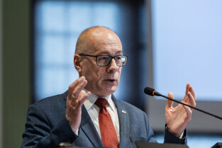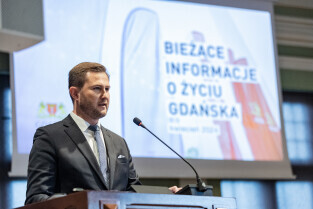 Gdańsk, ul. Wały Jagiellońskie. LXXVI sesji Rady Miasta Gdańska. Nz. wiceprezydent Piotr Grzelak