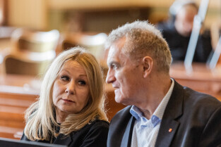 Gdańsk, ul. Wały Jagiellońskie. LXXVI sesji Rady Miasta Gdańska. Nz. radna Teresa Wasilewska i radny Andrzej Kowalczys