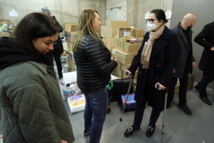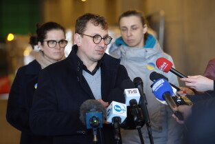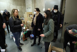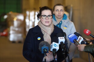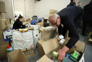 Gdańsk. Ładowanie konwoju humanitarnego na Ukrainę, karetka dla Lwowa.