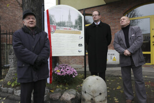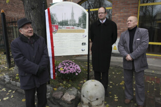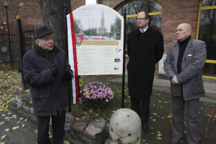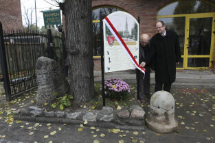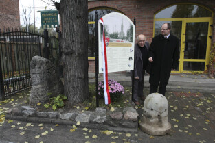 Lapidarium Oruńskie (przy Zajedzie Otelix) zawierające kamienie związane z historią Orunii, otwarcie z udziałem Prezydenta Gdańska. Nz. od lewej: Krzysztof Kosik, Paweł Adamowicz