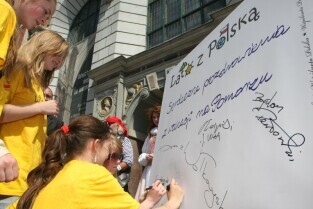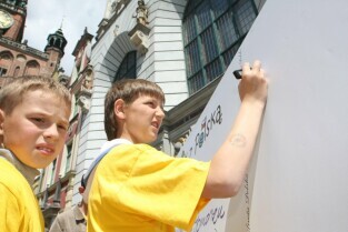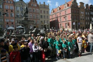 Spotkanie młodzieży Polonii z dawnych Kresów Wschodnich w Gdańsku, organizowane przez Stowarzyszenie "Wspólnota Polska". Gdańsk, Długi Targ.