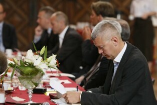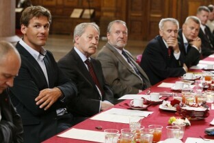 Inaugurującyjne posiedzenie "Ław Morskiej", podczas której debatowano o sprawach morskich. Gdańsk, Dwór Artusa. Nz. Mateusz Kusznierewicz, Morski Ambasador Gdańska