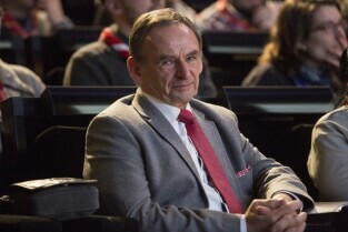 Gdańsk, Europejskie Centrum Solidarności. Lech Wałęsa występuje z przemówieniem podczas Międzynarodowego Forum Liderów Skautowych 2016. Nz. Prezes Fundacji Lecha Wałęsy Mieczysław Wachowski
