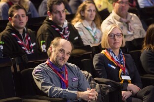 Gdańsk, Europejskie Centrum Solidarności. Lech Wałęsa występuje z przemówieniem podczas Międzynarodowego Forum Liderów Skautowych 2016. Nz. Przewodniczący Światowego Komitetu Skautowego João Armando Gonçalves