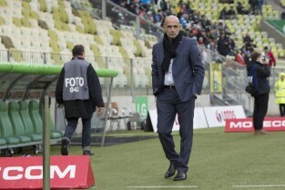 Gdańsk, Energa Arena. Mecz piłki nożnej. 26. kolejka Ekstraklasy Lechia Gdańsk - Jagiellonia Białystok. Nz. trener Jagiellonii Michał Probierz