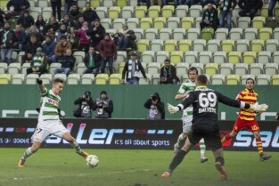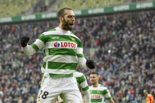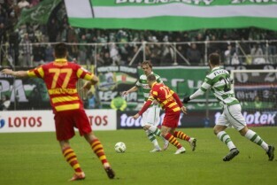 Gdańsk, Energa Arena. Mecz piłki nożnej. 26. kolejka Ekstraklasy Lechia Gdańsk - Jagiellonia Białystok. Nz. Lukas Haraslin