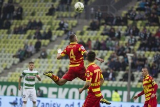 Gdańsk, Energa Arena. Mecz piłki nożnej. 26. kolejka Ekstraklasy Lechia Gdańsk - Jagiellonia Białystok. Nz. Rafał Janicki
