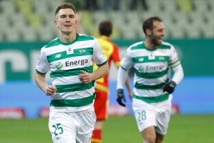 Gdańsk. Mecz Lechia Gdańsk - Jagiellonia Białystok 3:2. Nz. Michał Nalepa.