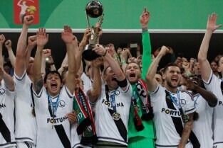 Warszawa. Mecz ostatniej kolejki Lotto Ekstraklasa Lechia Gdańsk - Legia Warszawa (0:0) Nz. piłkarze Legii Warszawa świętują zdobycie mistrzostwa kraju.