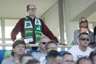 Bydgoszcz, stadion Zawiszy. Zakończony remisem mecz Lechia Gdańsk - Zawisza Bydgoszcz. Nz. Właściciel WKS Zawisza Bydgoszcz Radosław Osuch