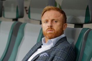 Gdańsk. Mecz Lechia Gdańska-Zagłębie Lublin 3:3. Nz. Trener Lechii Piotr Stokowiec.