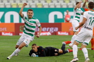 Gdańsk. Mecz Lechia Gdańska-Zagłębie Lublin 3:3. Nz. Artur Sobiech, strzelec trzech bramek dla Lechii.