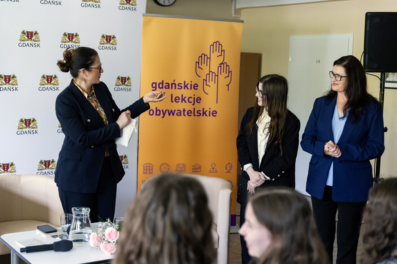 Gdańsk. Gdańska Lekcja Obywatelska z udziałem prezydent Gdańska Aleksandrą Dulkiewicz w Zespole Szkół Kreowania Wizerunku.