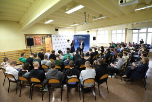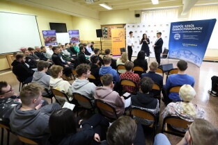 Gdańsk, Zespół Szkół Samochodowych. Lekcja Obywatelska z prezydent Gdańska Aleksandrą Dulkiewicz.