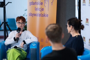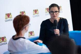 Gdańsk, ZSO nr 8 ul. Meissnera. Lekcja Obywatelska z udziałem prezydent Gdańska Aleksandrą Dulkiewicz
