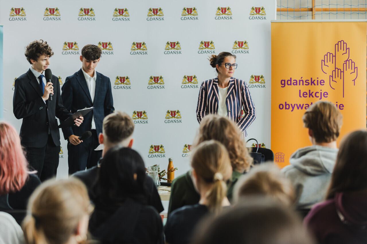 Gdańsk. Gdańska Lekcja Obywatelska z udziałem prezydent Gdańska Aleksandrą Dulkiewicz w w ZSO nr 10