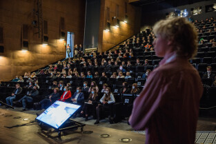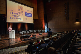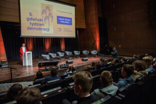 Gdańsk, ECS. Lekcje Obywatelskie. Miniwykłady w formule TEDx. powitanie: Monika Chabior, zastępczyni prezydenta Gdańska ds. rozwoju społecznego i równego traktowania.