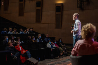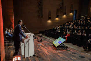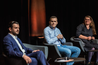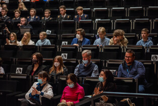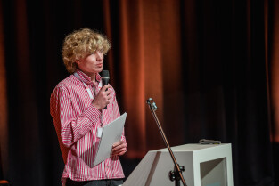 Gdańsk, ECS. Lekcje Obywatelskie. Miniwykłady w formule TEDx. powitanie: Monika Chabior, zastępczyni prezydenta Gdańska ds. rozwoju społecznego i równego traktowania. Nz. Igor Dorawa — uczeń trzeciej klasy XIV Liceum Ogólnokształcącego w Gdańsku, przewodniczący samorządu uczniowskiego w swojej szkole, społecznik i wolontariusz, laureat nagrody „Aktywni w mieście 2019” w kategorii Wolontariusz Roku, Młodzieżowa Rada Miasta