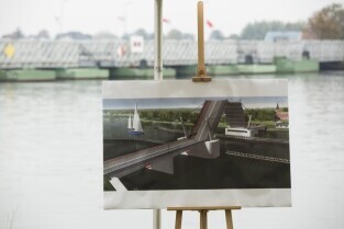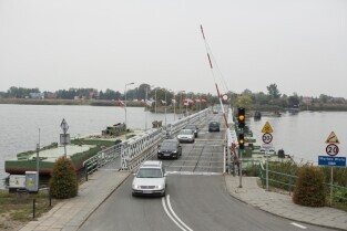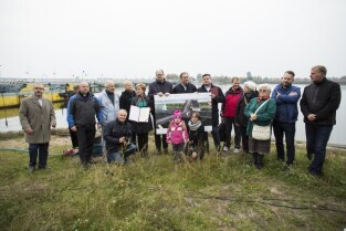 Gdańsk Sobieszewo. Podpisanie listu intencyjnego w sprawie współpracy przy projekcie pozyskania środków i budowy mostu zwodzonego w Sobieszewie. Nz. obecny most pontonowy