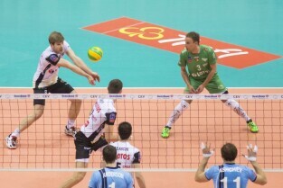 Lotos Trefl Gdańsk - Zenit Kazań. 2016 CEV DenizBank Volleyball Champions League. Ergo Arena. Gdańsk, Sopot. Nz. Theodore Salparov, po prawej Wilfredo Leon