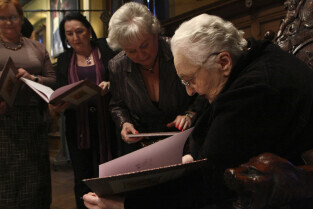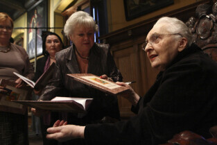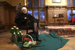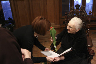 Lucyna Legut (aktorka, pisarka, malarka) w dniu swoich urodzin otrzymuje Nagrodę Kulturalną Miasta Gdańska. Gdańsk, Ratusz Staromiejski