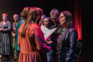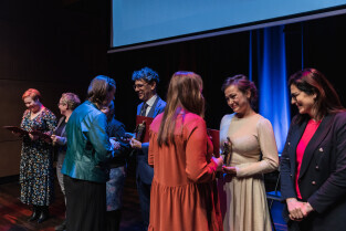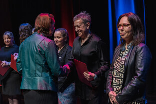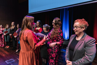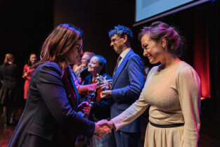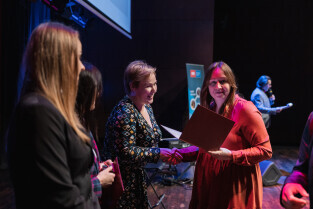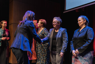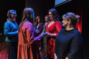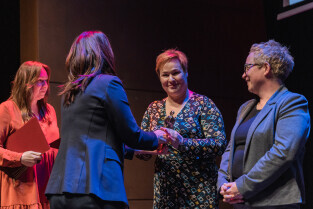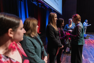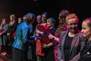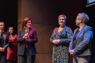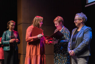 Gdańsk, ECS. Ludzie z misją. Gala wręczenia nagród. Statuetki i gratulacje wręczała, Aleksandra Dulkiewicz, prezydent Gdańska wraz z Agnieszką Chomiuk, dyrektorką gdańskiego MOPR i Moniką Chabior, wiceprezydentką Gdańska
