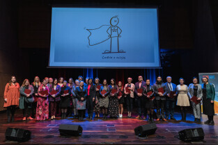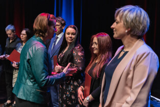 Gdańsk, ECS. Ludzie z misją. Gala wręczenia nagród. Statuetki i gratulacje wręczała, Aleksandra Dulkiewicz, prezydent Gdańska wraz z Agnieszką Chomiuk, dyrektorką gdańskiego MOPR i Moniką Chabior, wiceprezydentką Gdańska