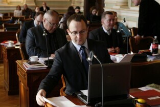 Obrady Rady Miasta Gdańska w Nowym Ratuszu. Nz. radny Maciej Krupa