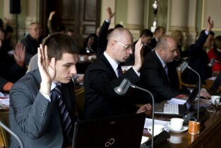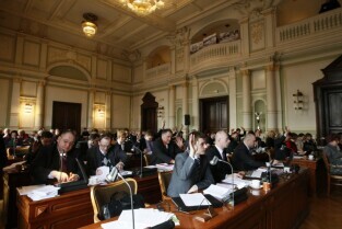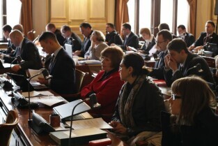 Obrady Rady Miasta Gdańska w Nowym Ratuszu.