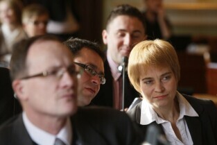 Obrady Rady Miasta Gdańska w Nowym Ratuszu. Nz. radni Małgorzata Chmiel i Wojciech Błaszkowski