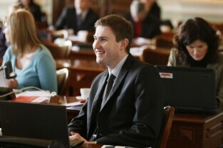 Obrady Rady Miasta Gdańska w Nowym Ratuszu. Nz. radny Marcin Skwierawski