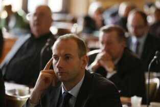 Obrady Rady Miasta Gdańska w Nowym Ratuszu. Nz. radny Piotr Grzelak