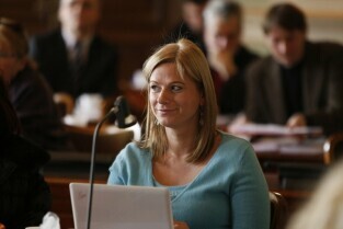 Obrady Rady Miasta Gdańska w Nowym Ratuszu. Nz. radna Beata Wierzba