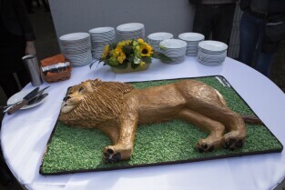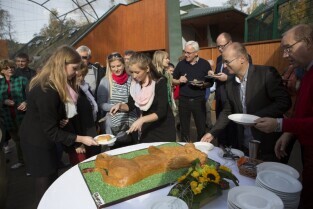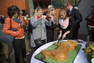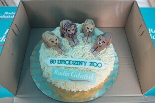 Dzień otwarty ZOO w Oliwie, którego główną atrakcją jest nowy pawilon dla Lwów. Nz. okolicznościowy tort od Radia Gdańska dla ZOO
