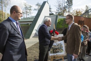 Otwarcie wybiegu dla lwów. Ogród Zoologiczny w Gdańsku Oliwie. Nz. po środku Dyrektor ZOO w Oliwie Michał Targowski, po lewej Prezydent Gdańska Paweł Adamowicz