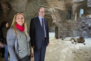 Otwarcie wybiegu dla lwów. Ogród Zoologiczny w Gdańsku Oliwie. Nz. Prezydent Gdańska Paweł Adamowicz i Radna Miasta Gdańska Beata Wierzba