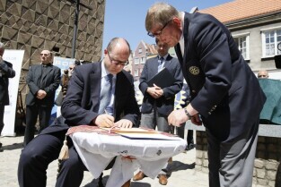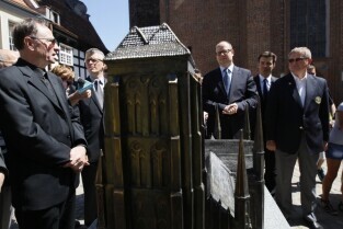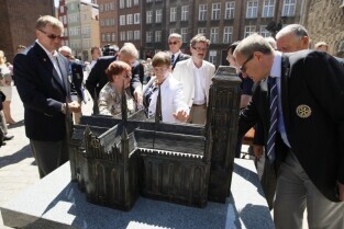 Odsłonięcie makiety Bazyliki Mariackiej w Gdańsku, dzięki której osoby niewidome i niedowidzące poprzez dotyk będą mogły za pomocą dłoni "zobaczyć" jak wygląda największa na świecie ceglana świątynia.na świecie. Makietę ufundował Rotary Club