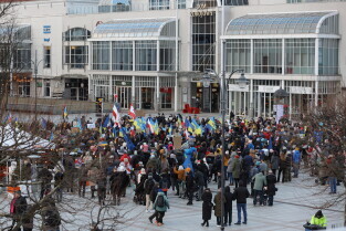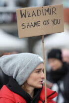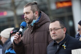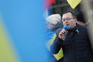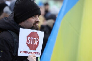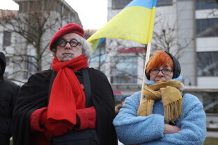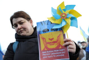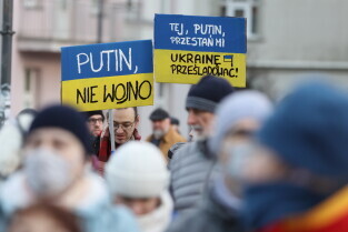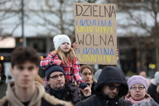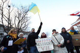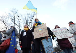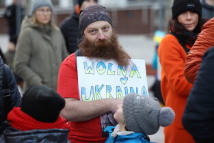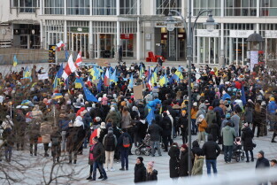 Manifestacja poparcia dla Ukrainy zaatakowanej przez Rosję.