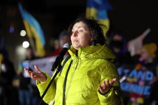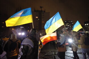 Manifestacja solidarności z Ukrainą na pl. Solidarności.