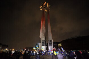 Gdańsk.Manifestacja solidarności z Ukrainą na pl. Solidarności.