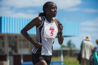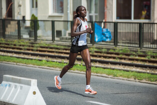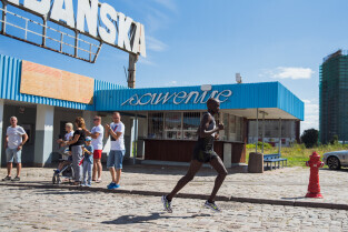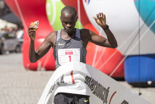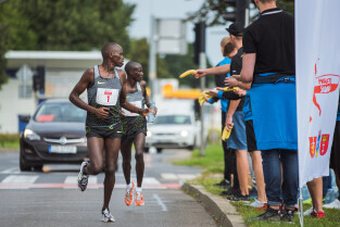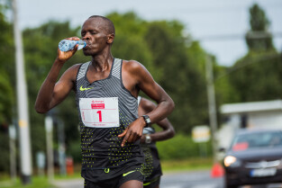 XXIII Energa Maraton Solidarności na trasie z Gdyni do Gdańska. Nz. drugi na mecie Karim Kwemoi
