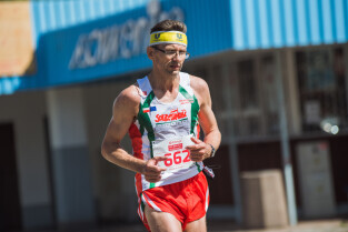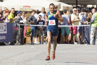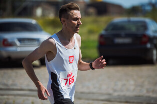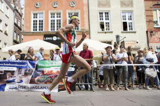 XXIII Energa Maraton Solidarności na trasie z Gdyni do Gdańska. Nz. trzeci na mecie Kamil Kunert