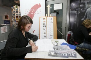 Maraton pisania listów Amnesty International w obronie praw człowieka. Gdańsk, wystawa "Drogi do Wolności"