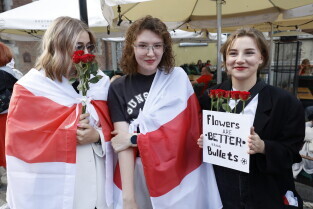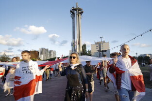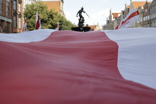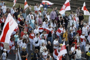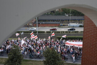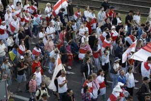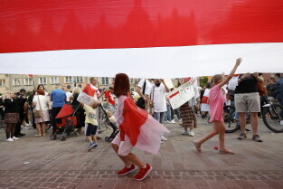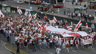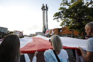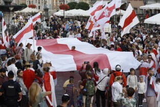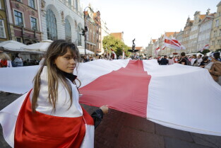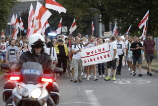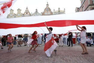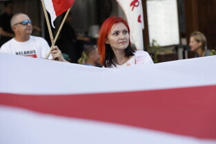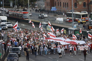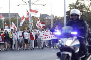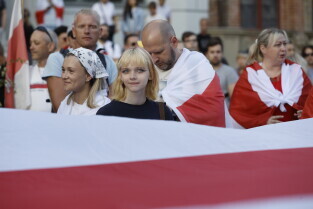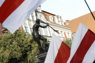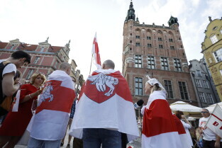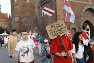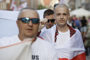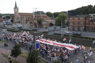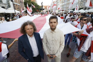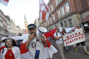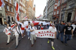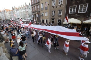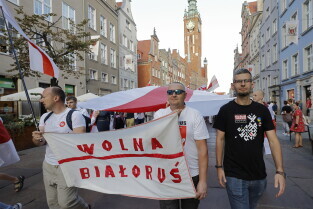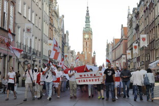 Gdańsk. Marsz Białoruski. 9 sierpnia przypada druga rocznica sfałszowanych wyborów prezydenckich na Białorusi z 2020 roku.