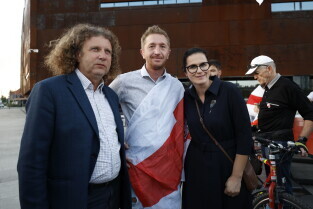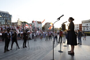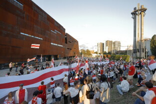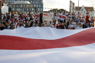 Gdańsk. Marsz Białoruski. 9 sierpnia przypada druga rocznica sfałszowanych wyborów prezydenckich na Białorusi z 2020 roku.