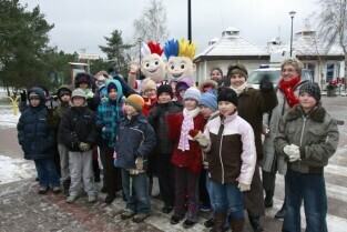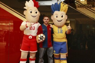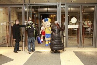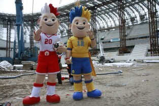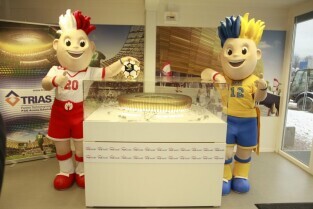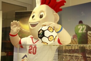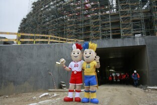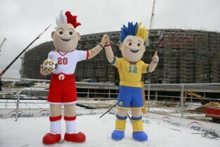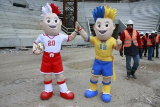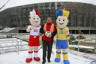 Wizyta w Gdańsku oficjalnych maskotek piłkarskiego turnieju UEFA EURO 2012. Stadion PGE Arena Gdańsk.