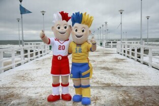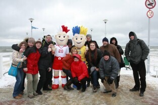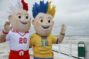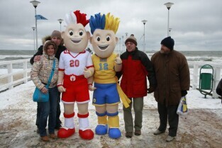 Wizyta w Gdańsku oficjalnych maskotek piłkarskiego turnieju UEFA EURO 2012. Molo w Gdańsku Brzeźnie.