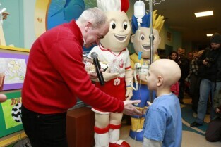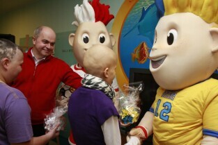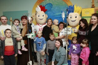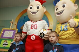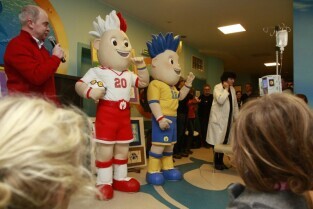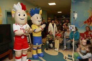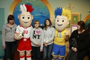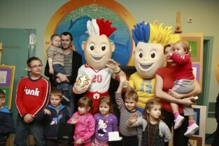 Wizyta w Gdańsku oficjalnych maskotek piłkarskiego turnieju UEFA EURO 2012. Gdański Uniwersytet Medyczny - Klinika dla dzieci.