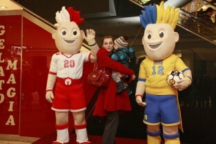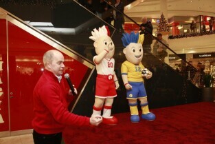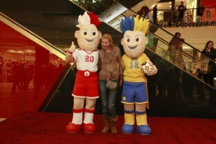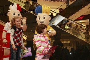 Wizyta w Gdańsku oficjalnych maskotek piłkarskiego turnieju UEFA EURO 2012. Galeria Bałtycka.