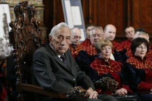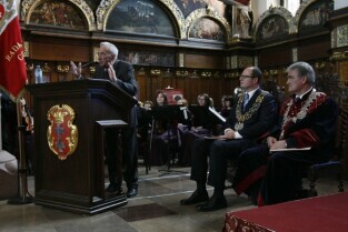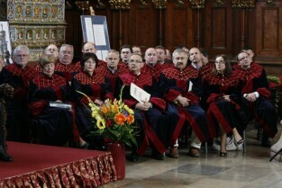 Dwór Artusa. Uroczystość nadania tytułu Honorowego Obywatela Miasta Gdańska Tadeuszowi Mazowieckiemu. Nz. Radni Miasta Gdańska